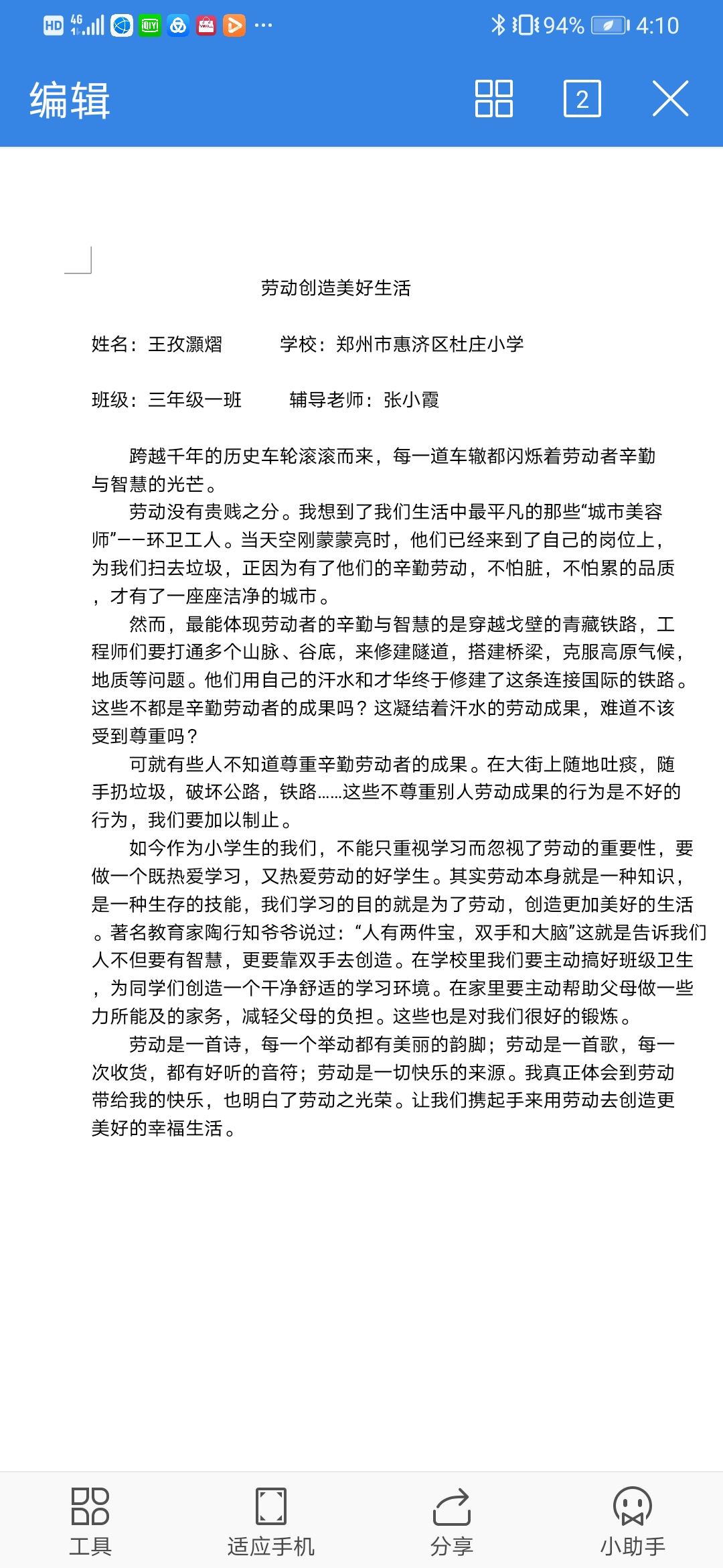 指导老师:张小霞 所属学校:杜庄小学