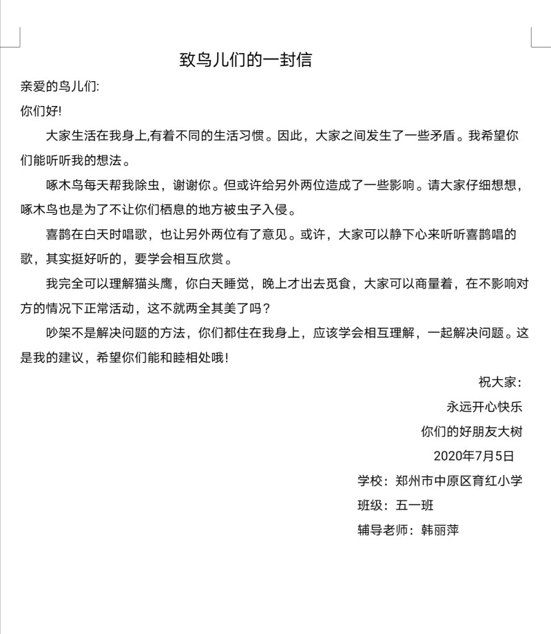 指导老师:韩丽萍 所属学校:郑州市中原区育红小学