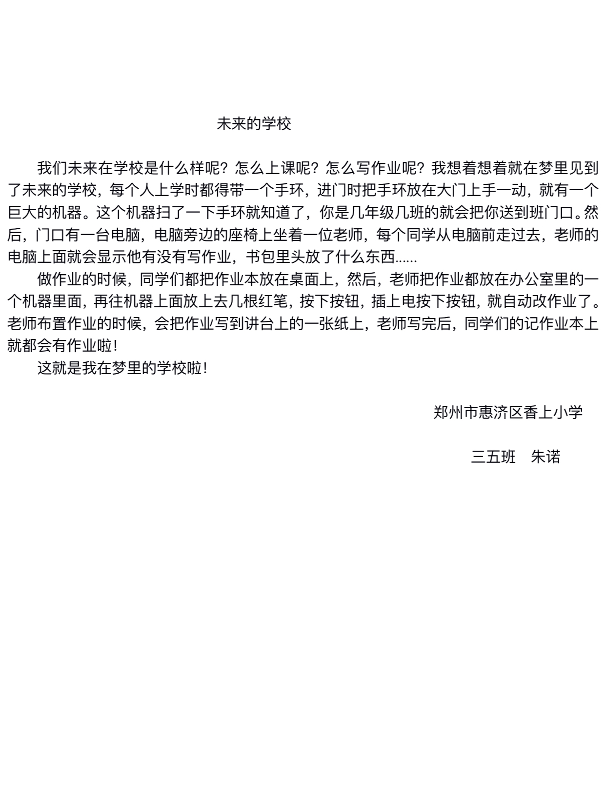 指导老师:杨晨 所属学校:郑州市惠济区香山小学