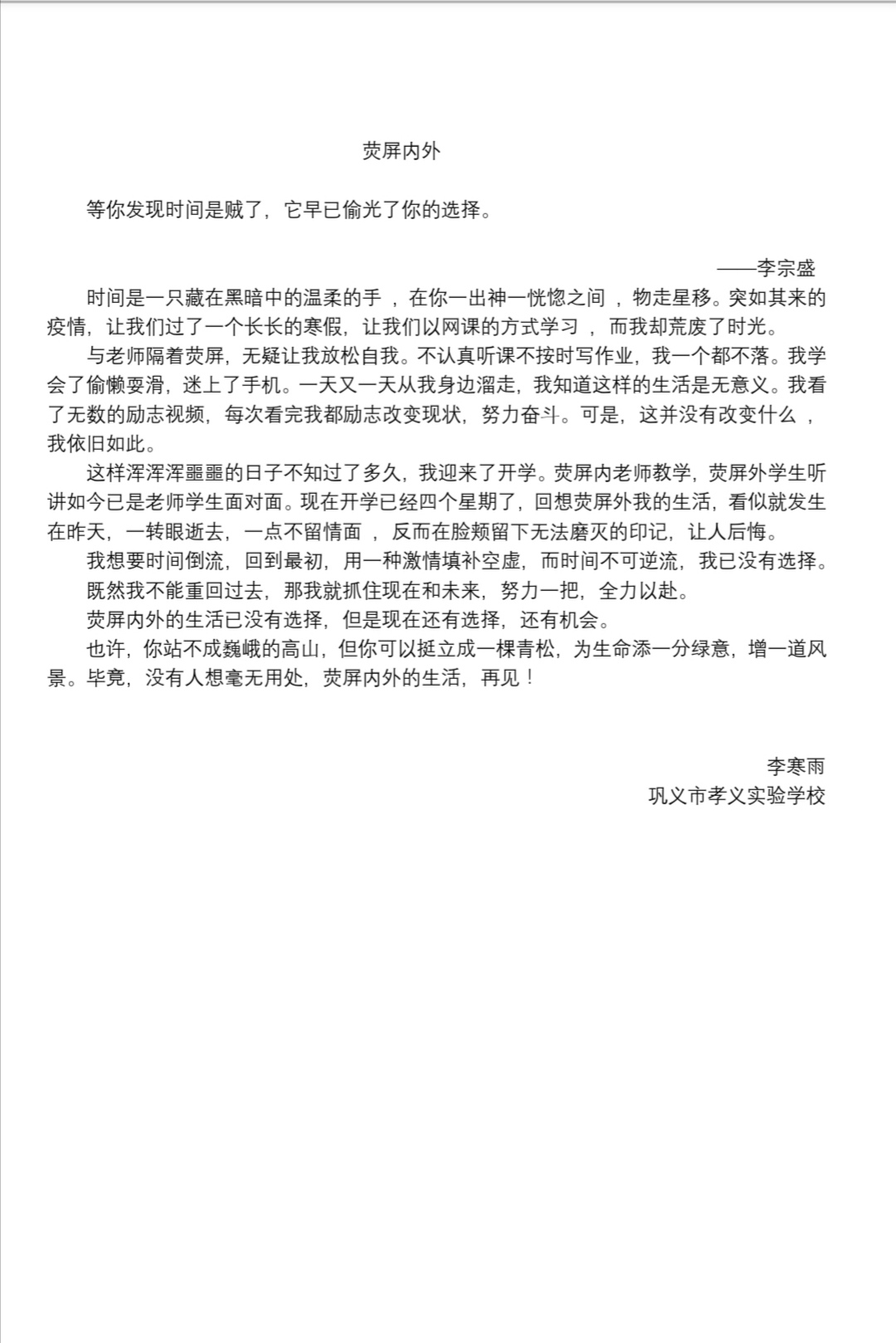 指导老师:王冬菊 所属学校:巩义市孝义实验学校