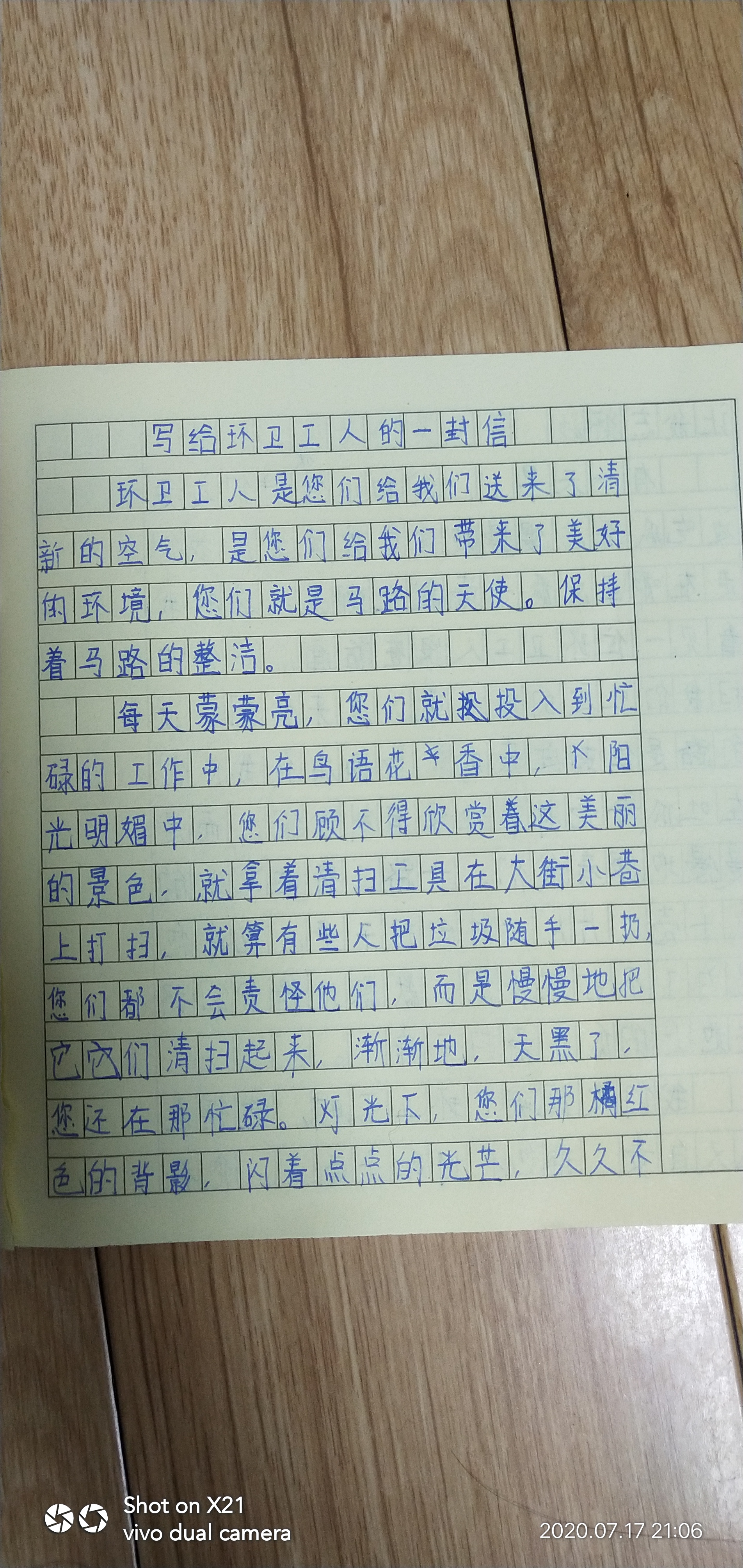 写给环卫工人的一封信