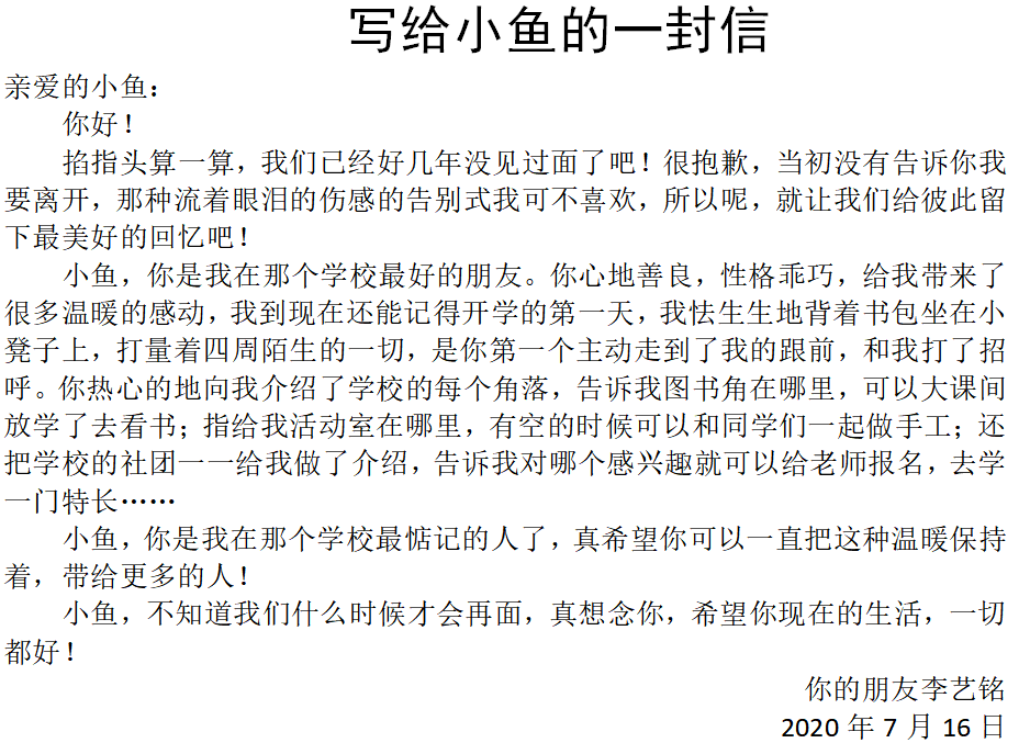 本文让我们看到了年仅十岁孩子心底的柔软,成人都以为孩子不懂感情,但这篇小作文却让我们字里行间中感受到了真情一瞥。短暂的相处,真挚的感情,孩子也能在心底怀念良久……