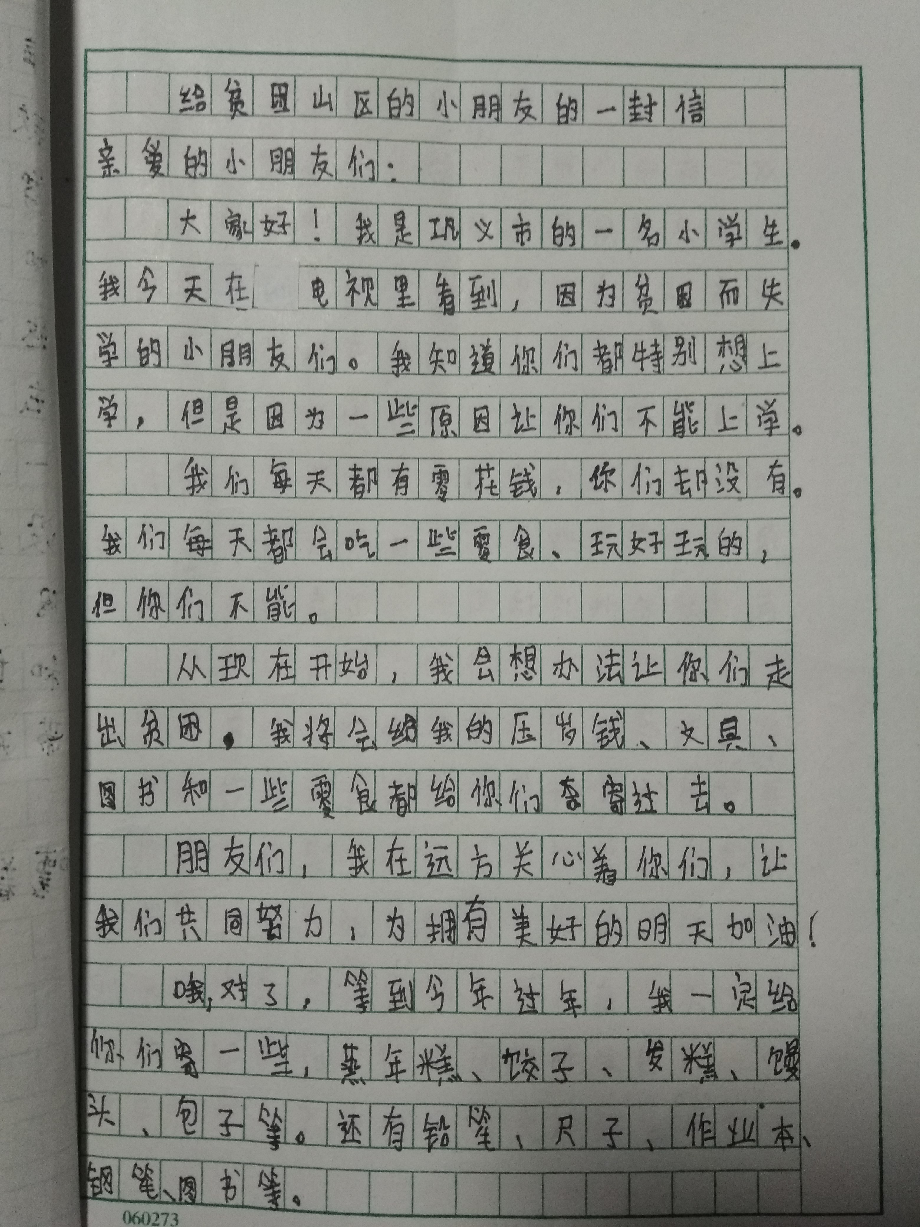 给贫困山区小朋友的一封信