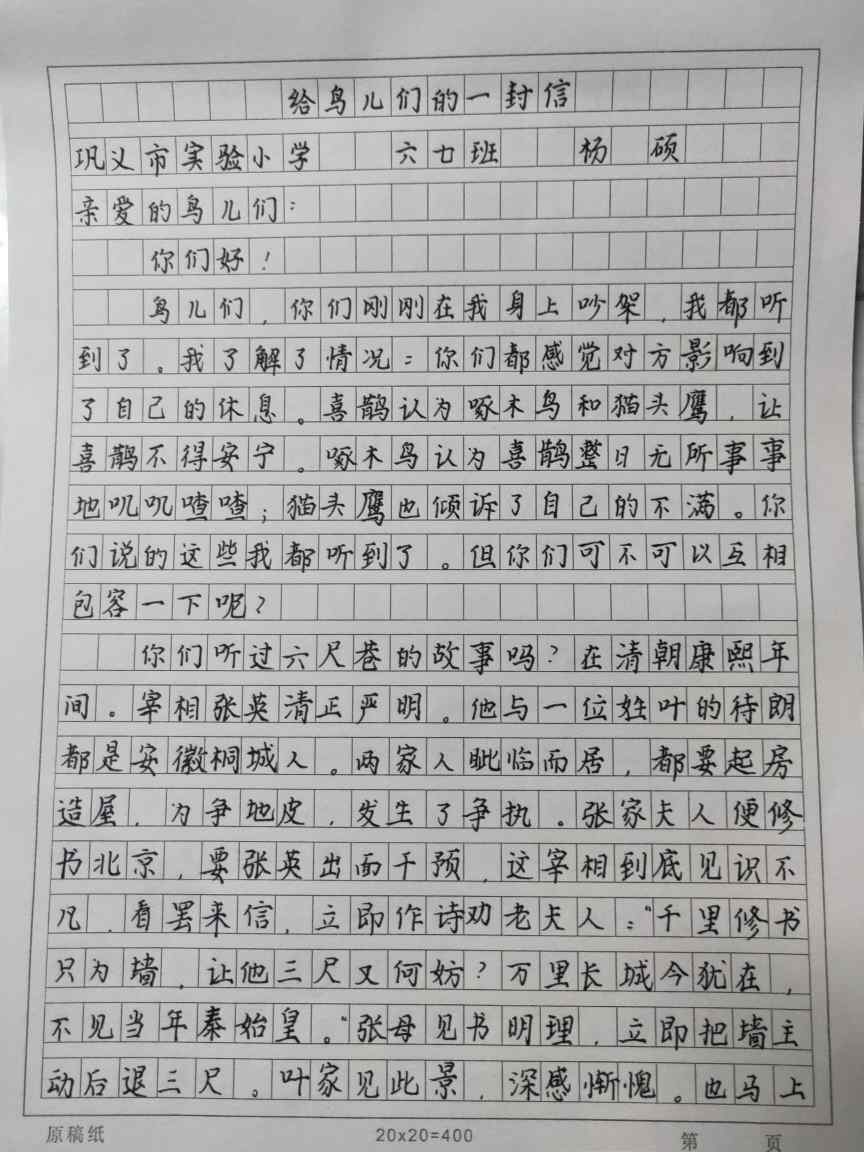 给鸟儿们的一封信