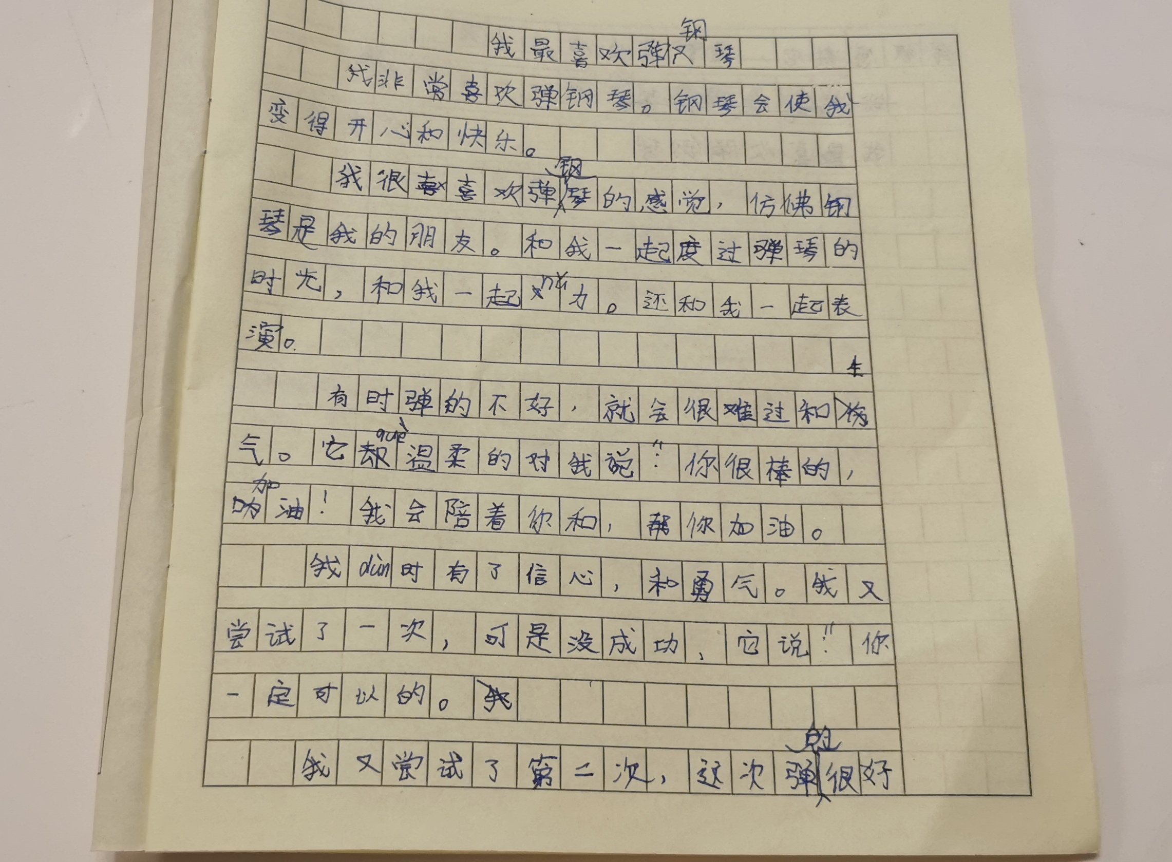 我最喜欢弹钢琴