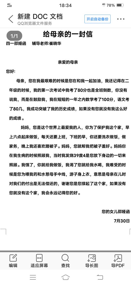 给母亲的一封信