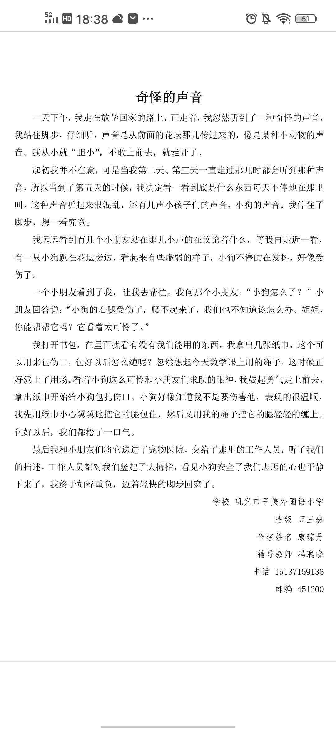 指导老师:冯聪晓 所属学校:巩义市子美小学