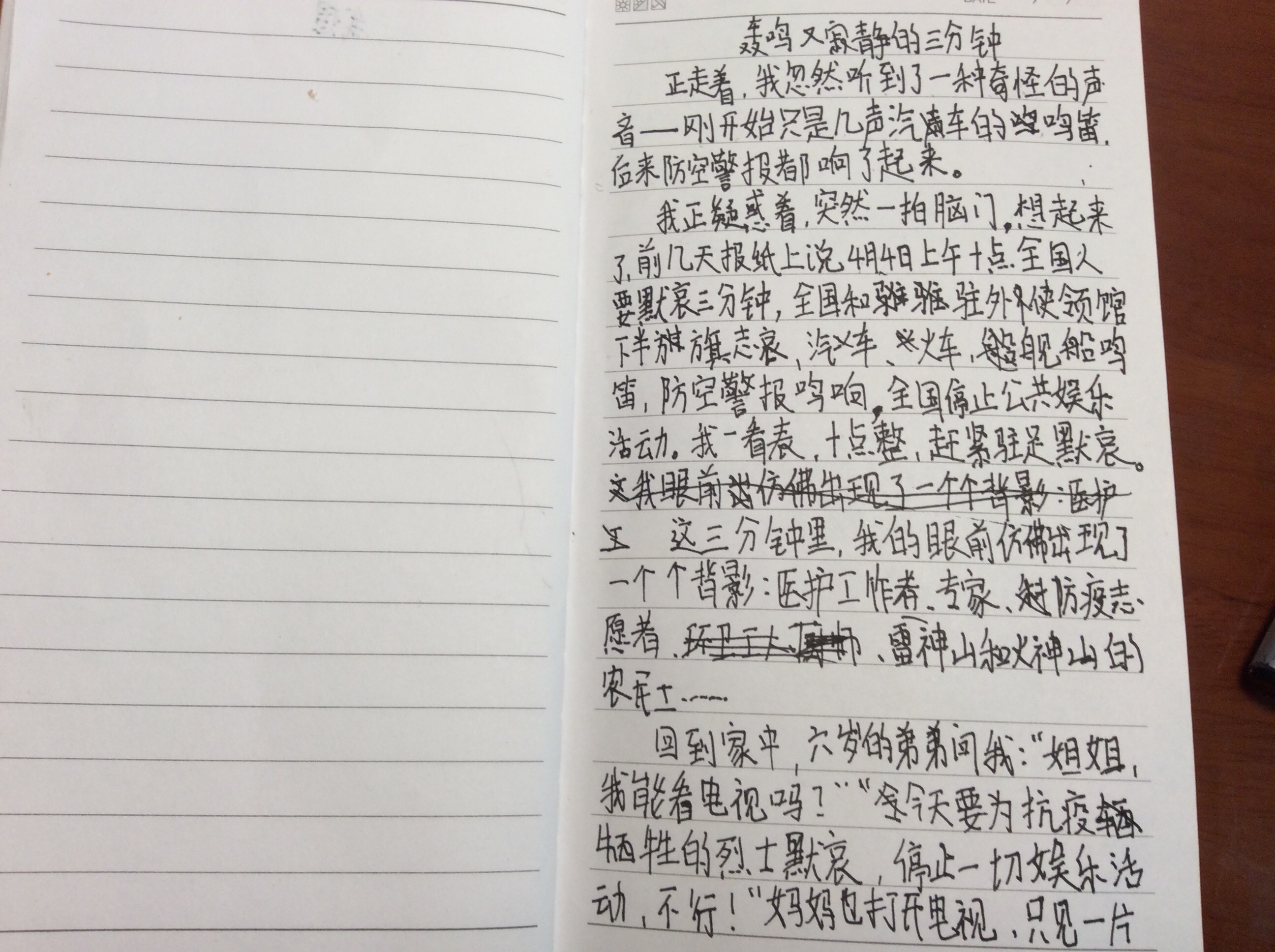 文章题目命名的很好,轰鸣和寂静,一对反义词,凸显了声音的奇怪,成功吸引了读者的阅读兴趣。建议作文用文档打印出来,书写尽量再工整一些。
