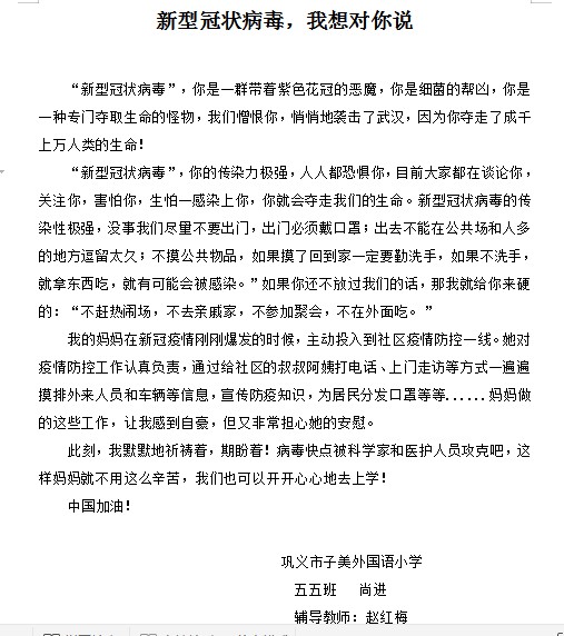 指导老师:赵红梅 所属学校:巩义市子美小学