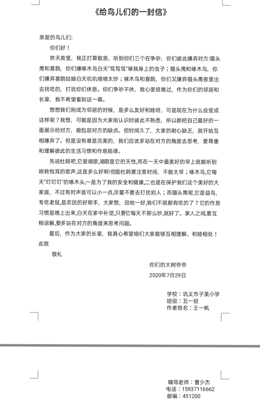 给鸟儿们的一封信