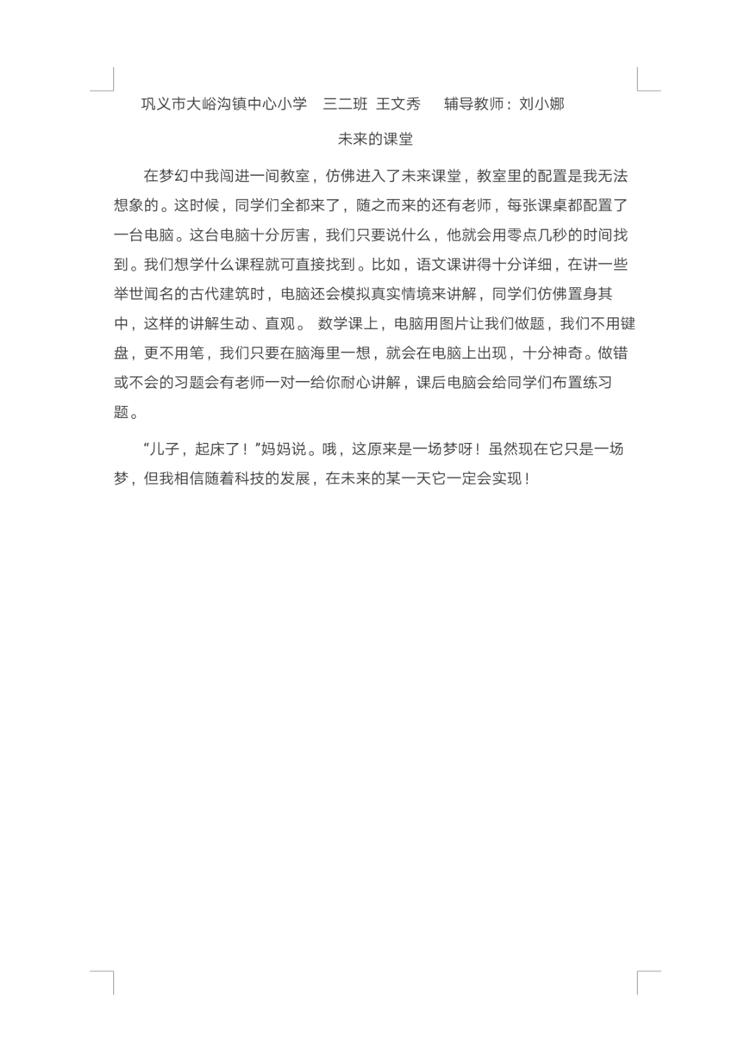 指导老师:刘小娜 所属学校:巩义市大峪沟镇中心小学