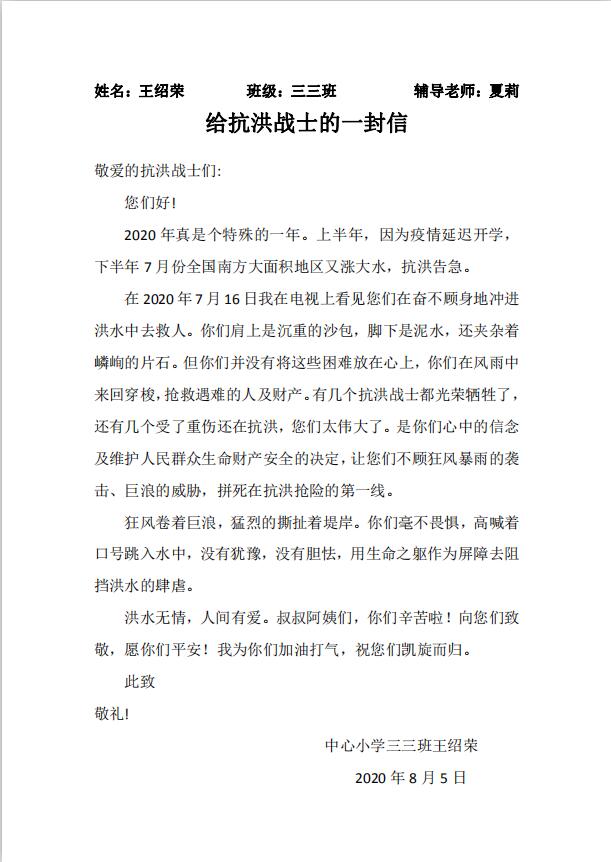 给抗洪战士的一封信