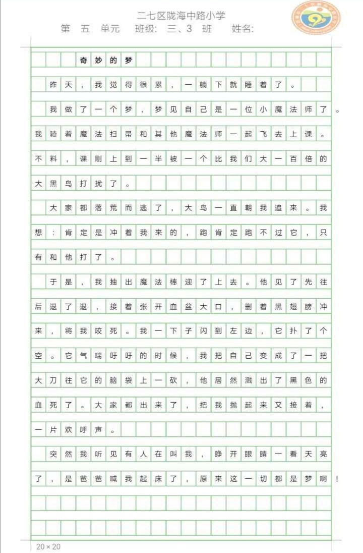 指导老师:张玉玲 所属学校:郑州市二七区陇海中路小学