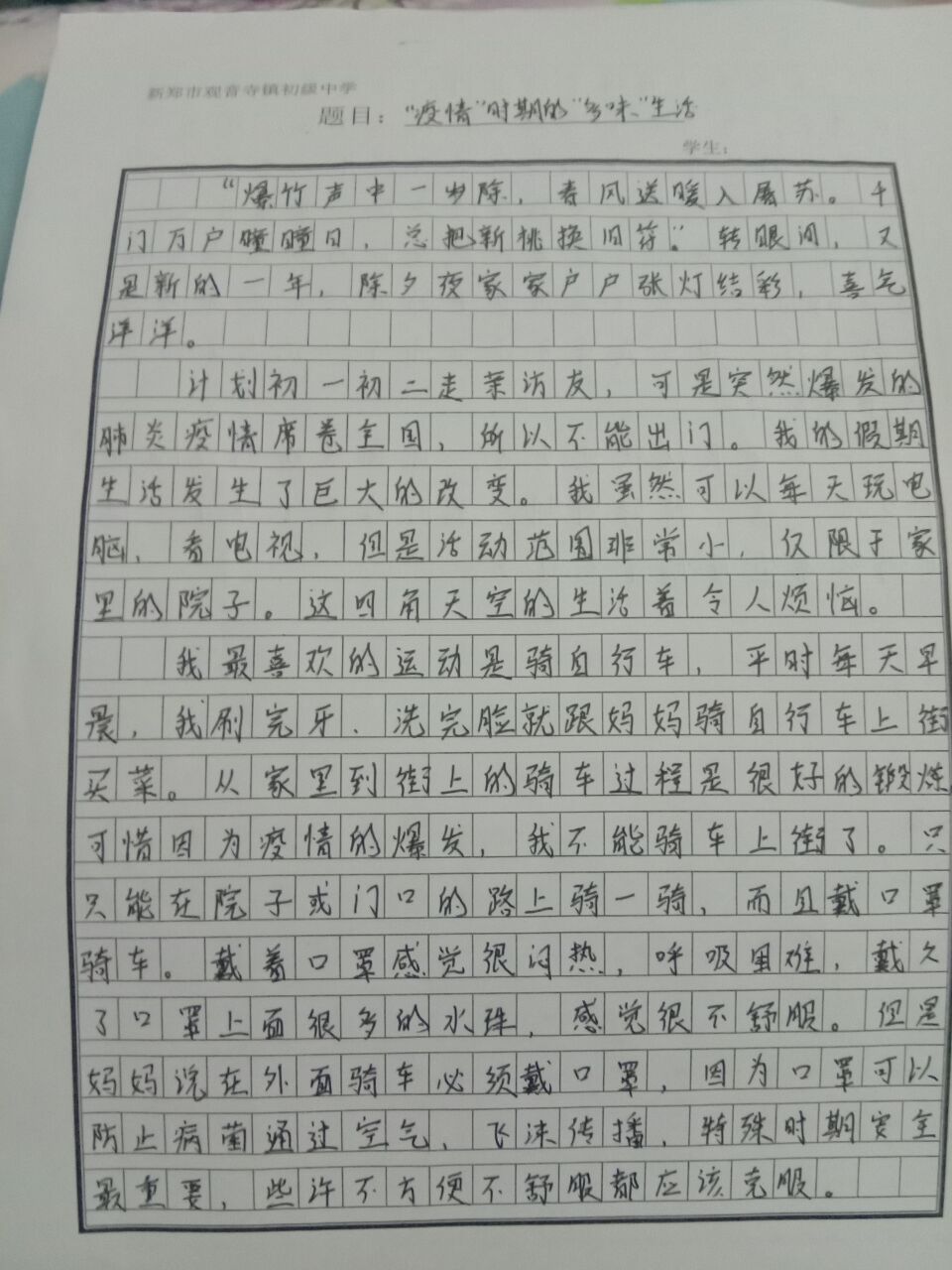 指导老师:郭丰源 所属学校:新郑市观音寺镇初级中学