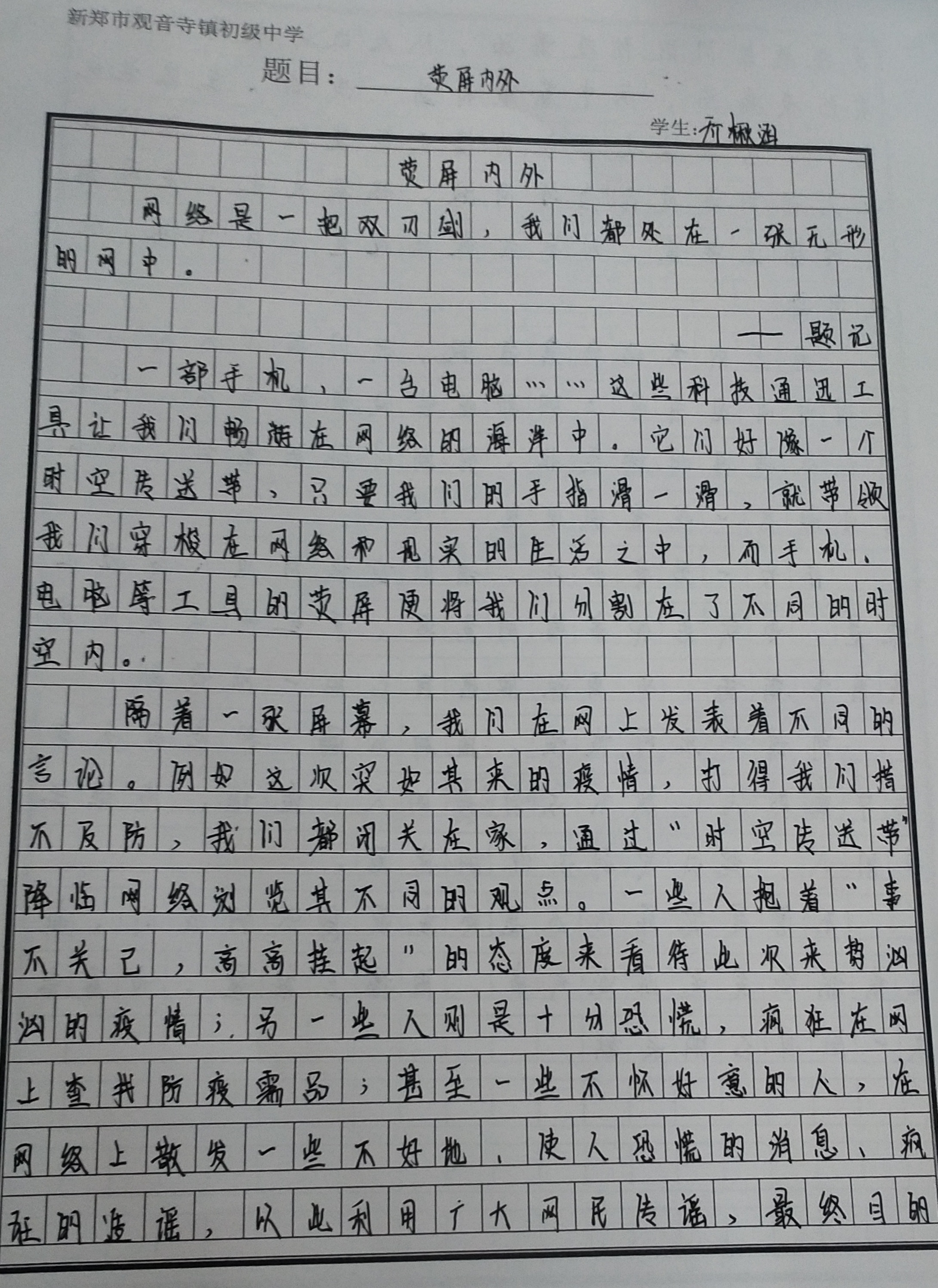 指导老师:李苗苗 所属学校:新郑市观音寺镇初级中学