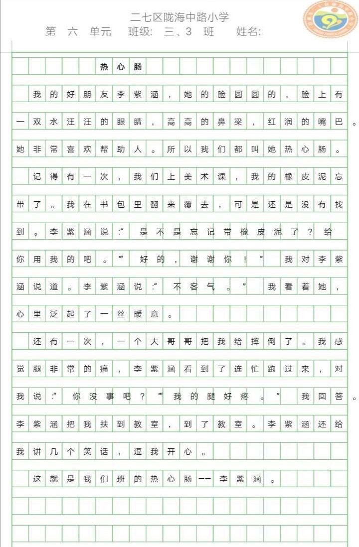 指导老师:张玉玲 所属学校:郑州市二七区陇海中路小学