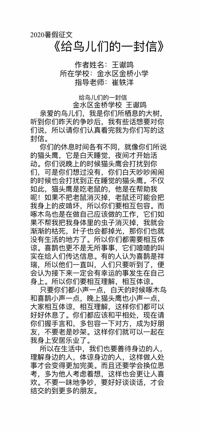 写给小鸟的一封信