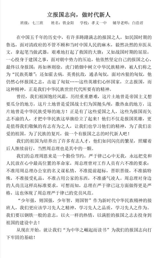 立报国志向做时代新人