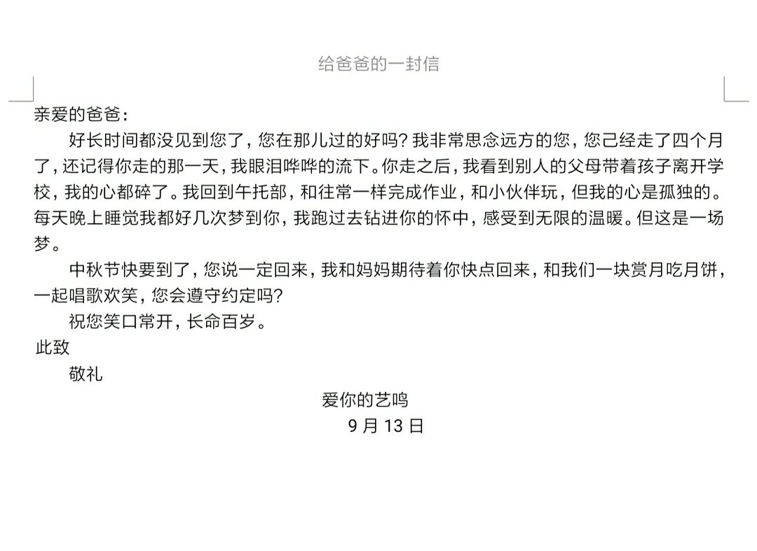 写给爸爸的一封信