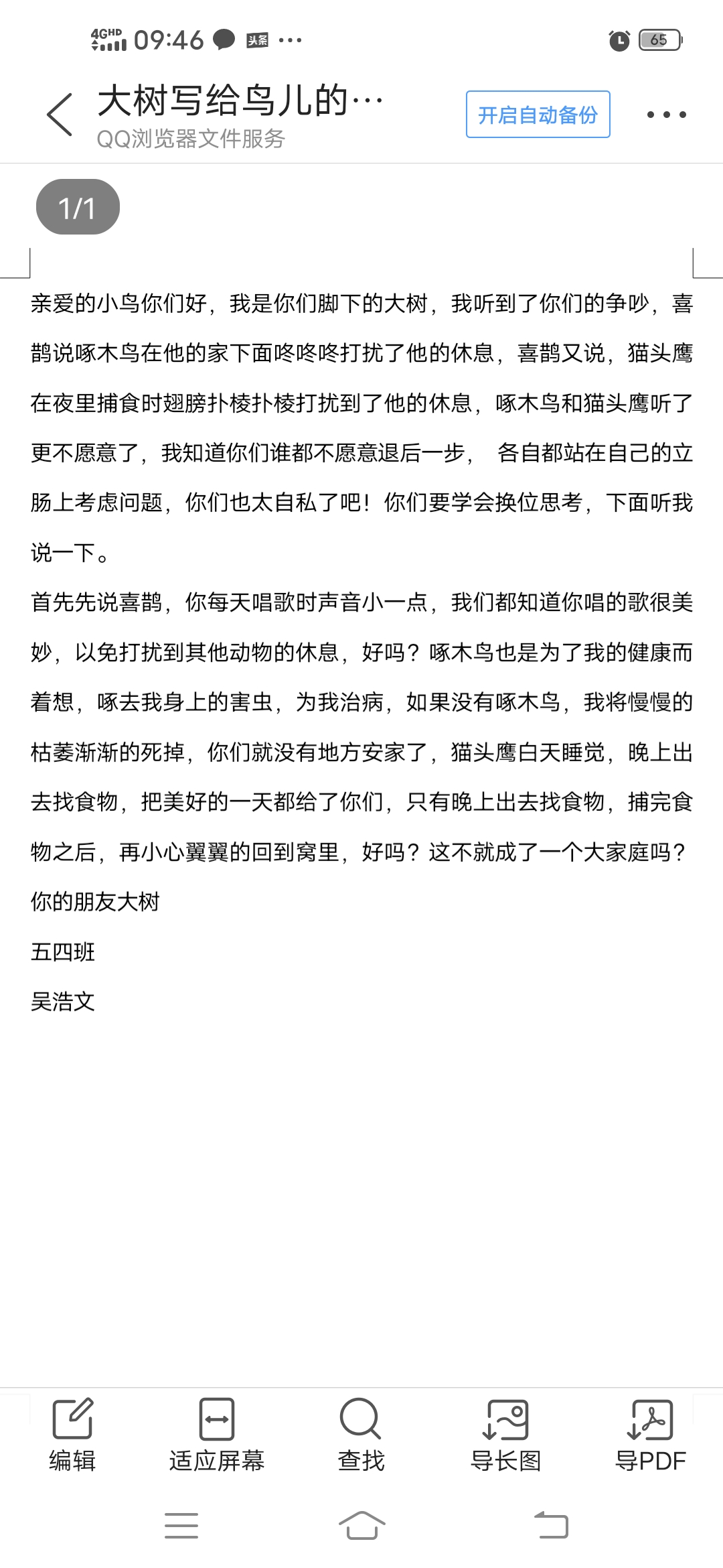 大树给争吵的鸟儿的一封信。