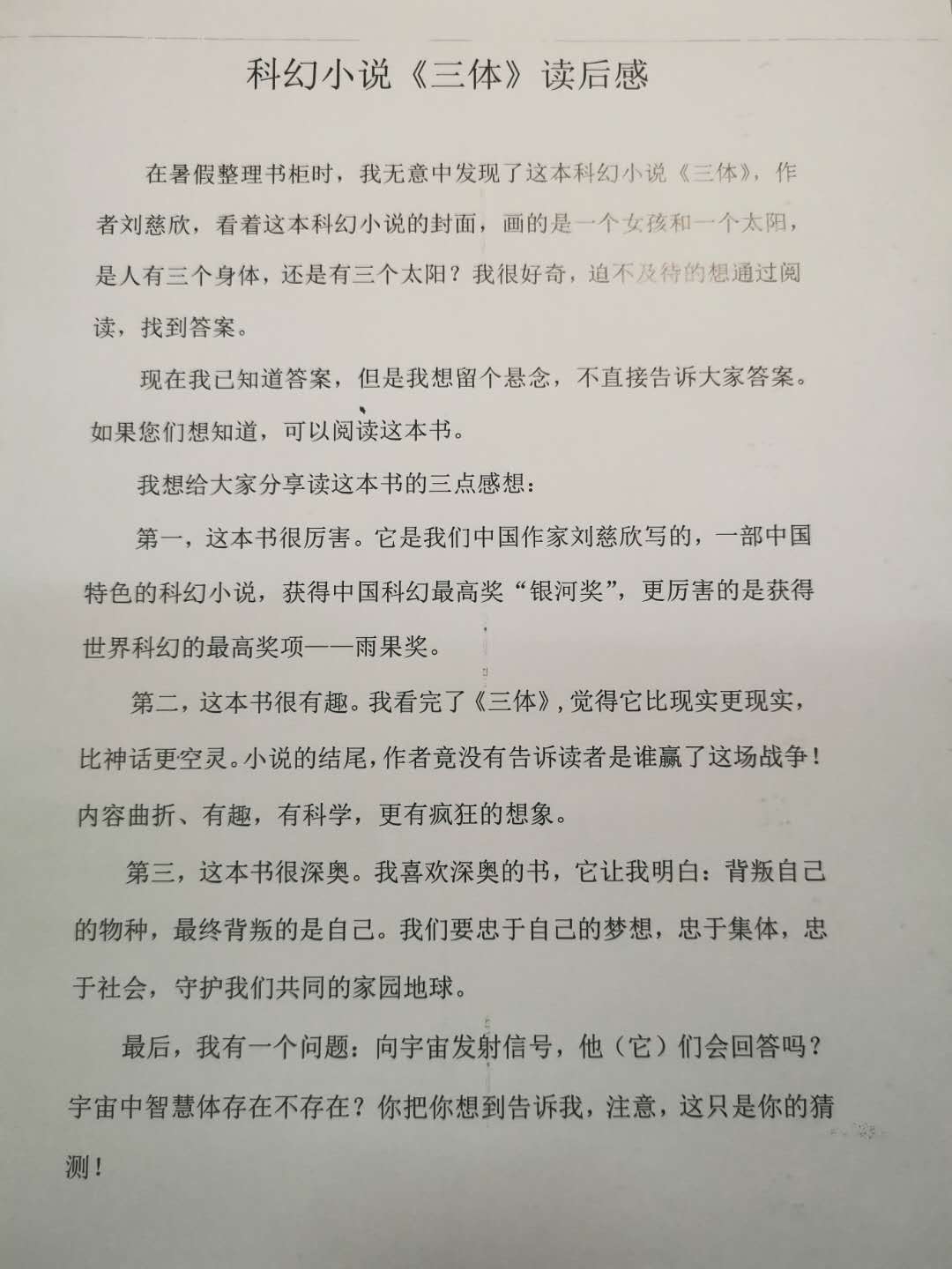 科幻小说《三体》读后感