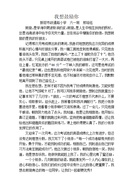 指导老师:邢老师 所属学校:新密市政通路小学