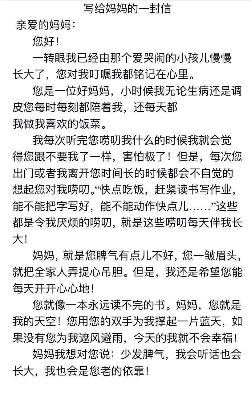 写给妈妈的一封信