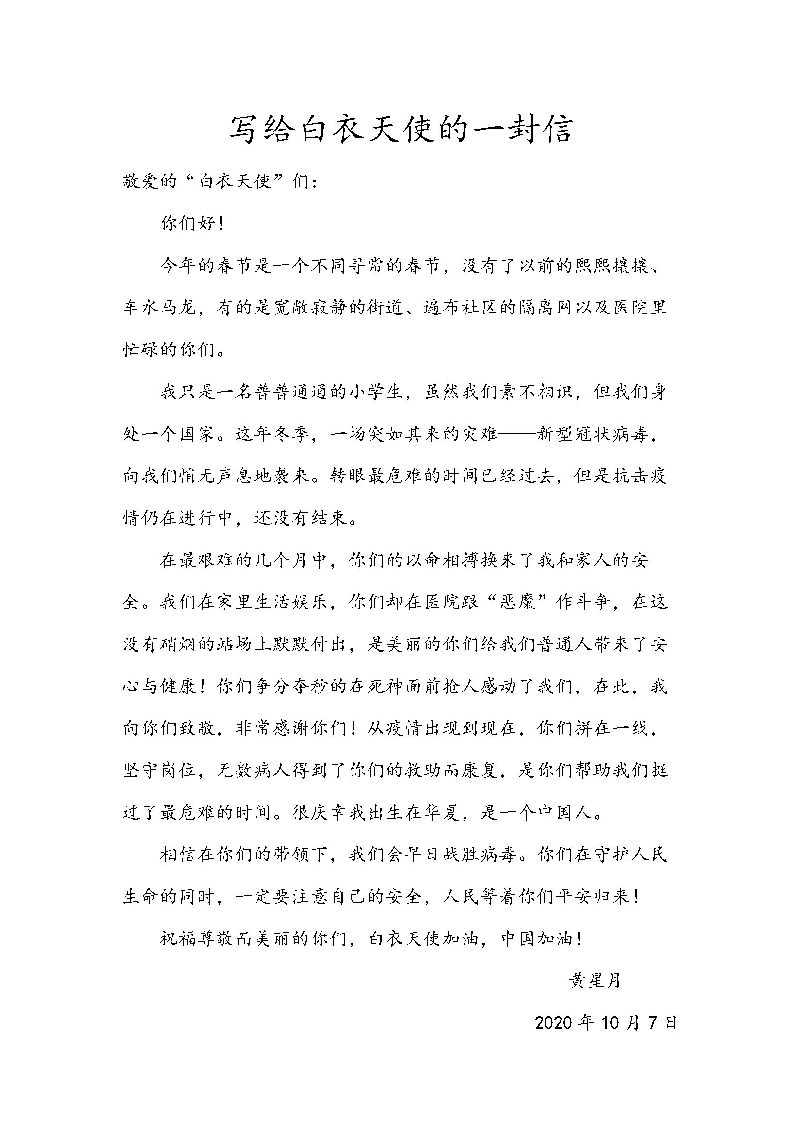 写给白衣天使的一封信