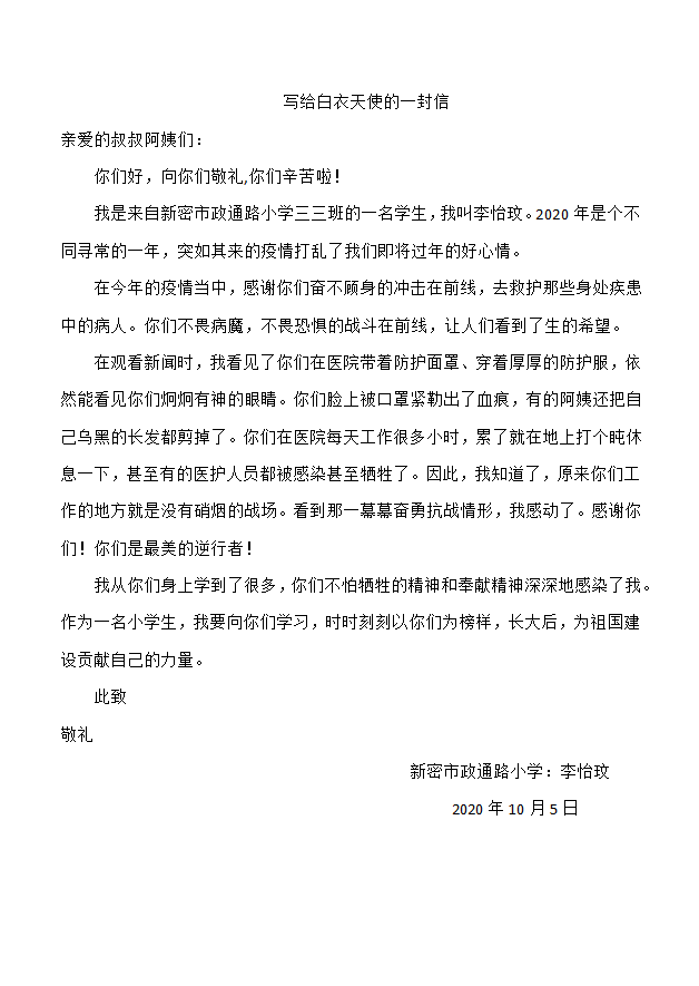 写给白衣天使的一封信
