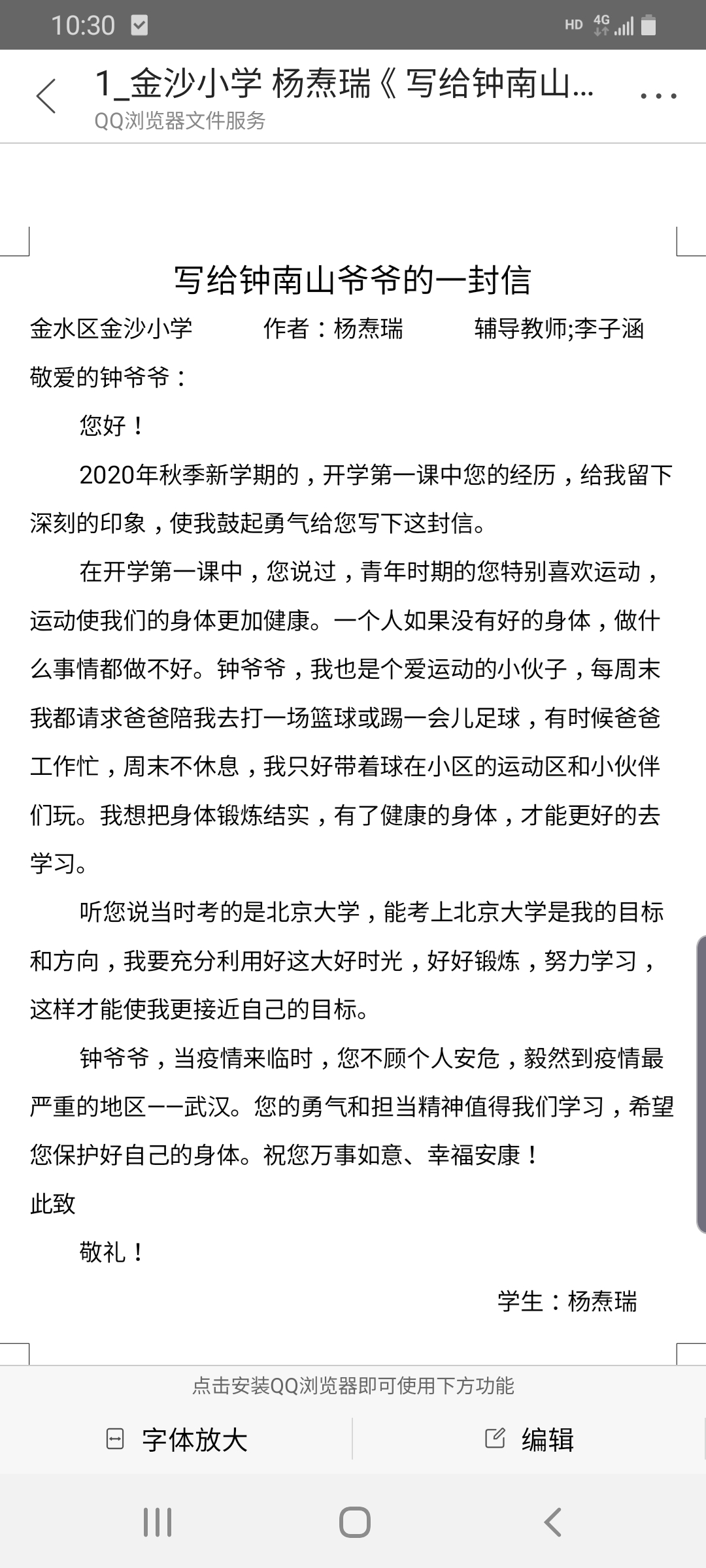 写给钟南山爷爷的一封信