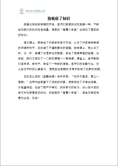 指导老师:安利平 所属学校:新郑市外国语小学