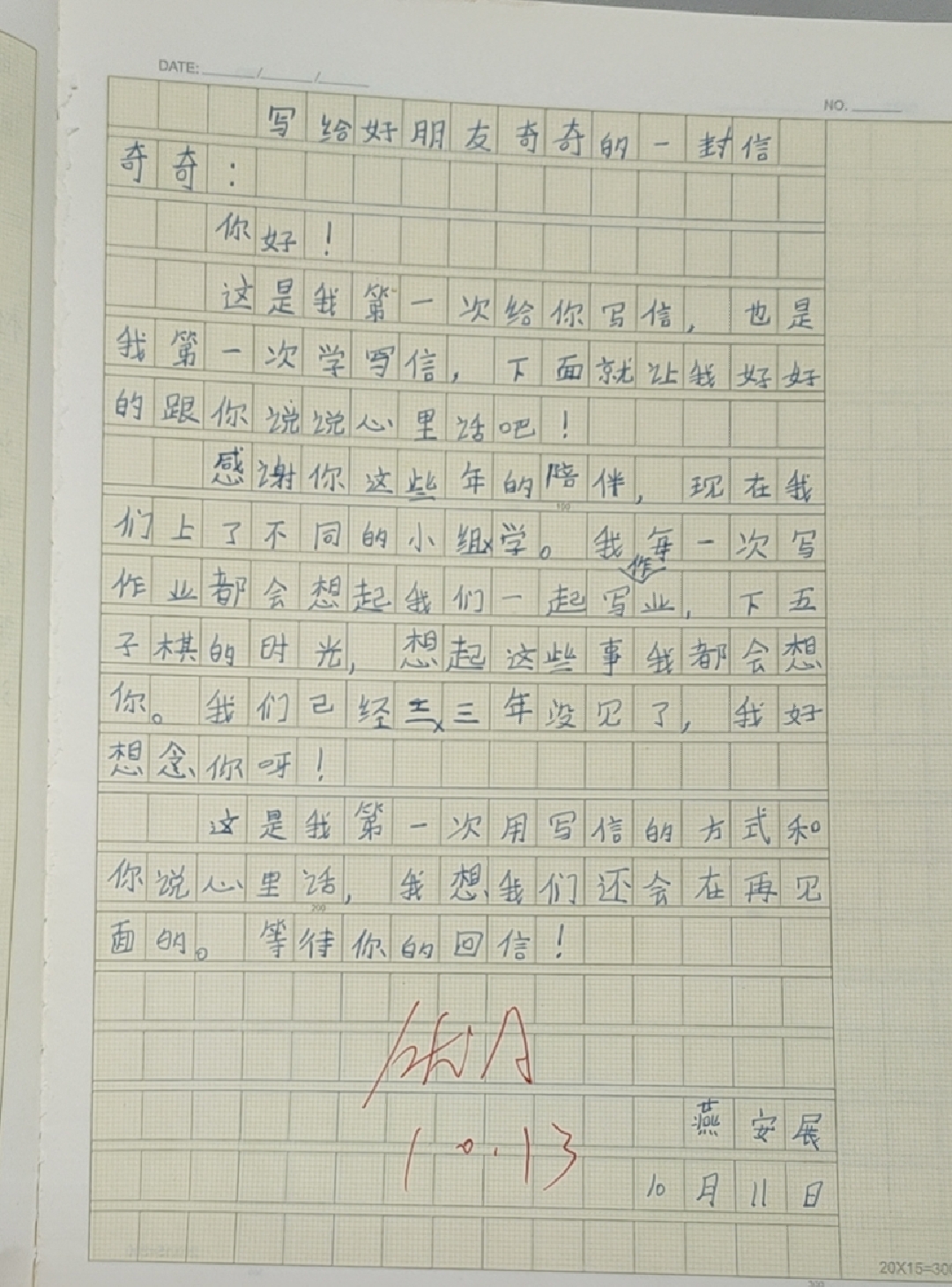 写给好朋友奇奇的一封信