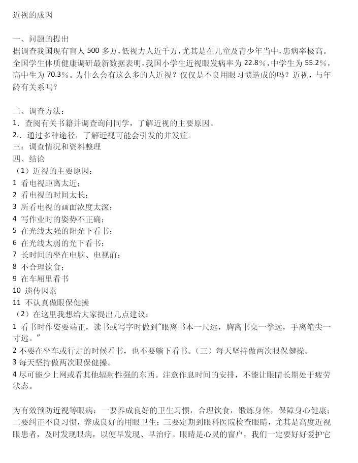 关于近视的成因的研究报告