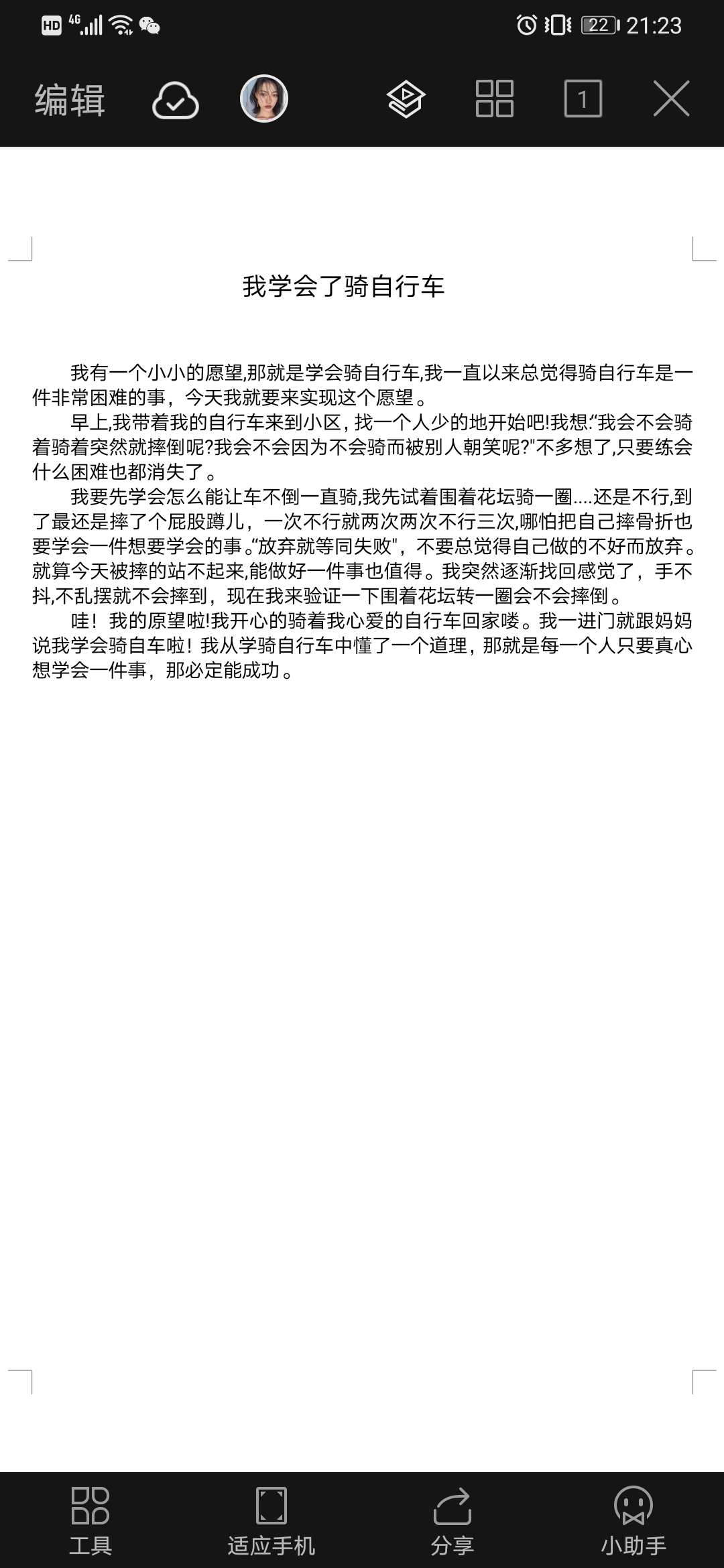 我学会了骑自行车
