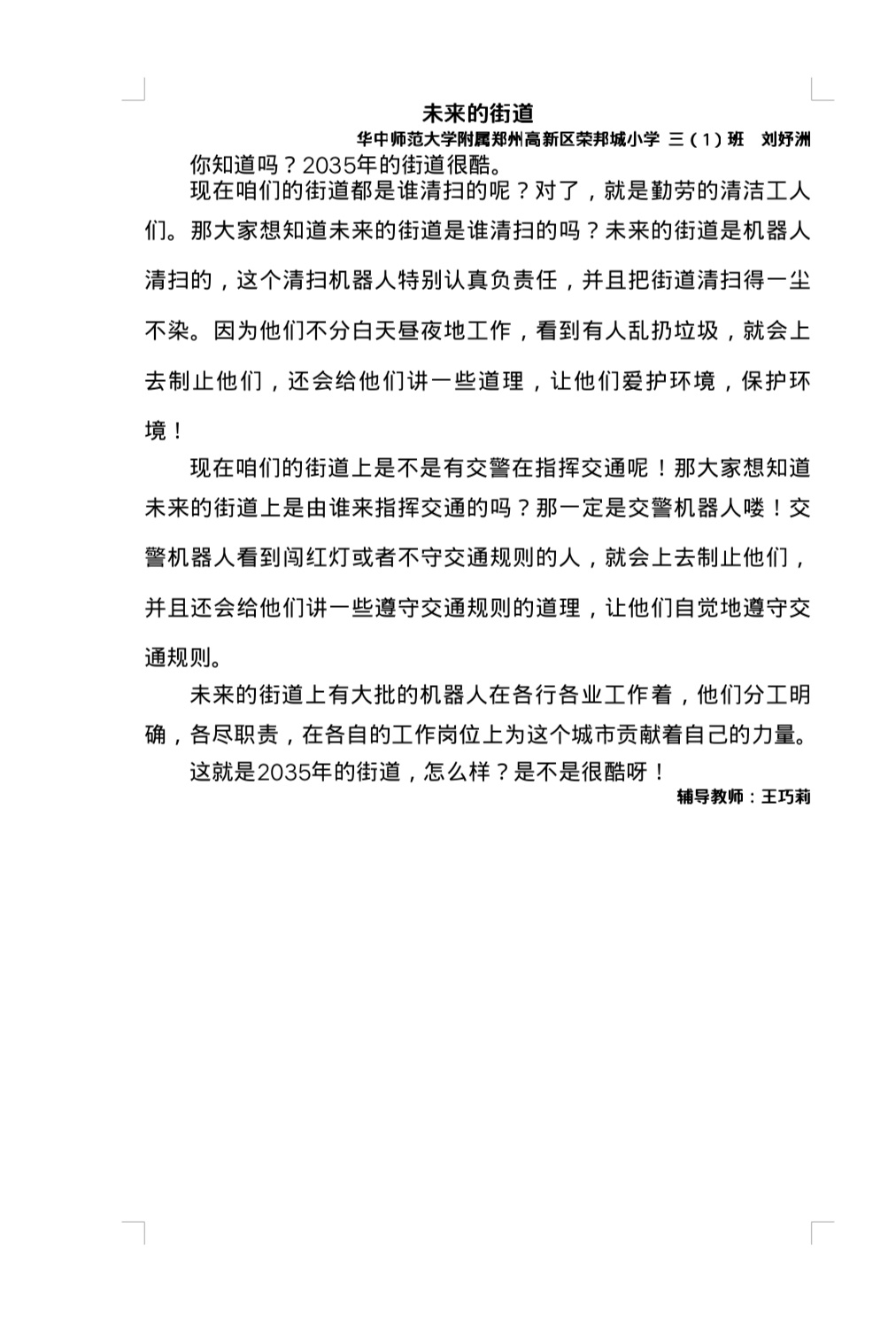 指导老师:王巧莉 所属学校:华中师范大学附属高新区荣邦城小学