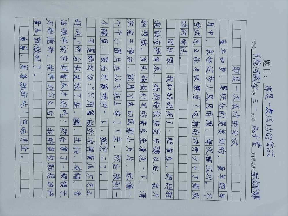 (1) 童年如梦,是快乐的是美好的,童年的岁月中我经历过多少风风雨雨,每次都成功不尝试,怎么能有收获呢?这样的功劳少不了那成功的尝试。 眉批:千古文章意为高,你的开头已经含有题意了,高!