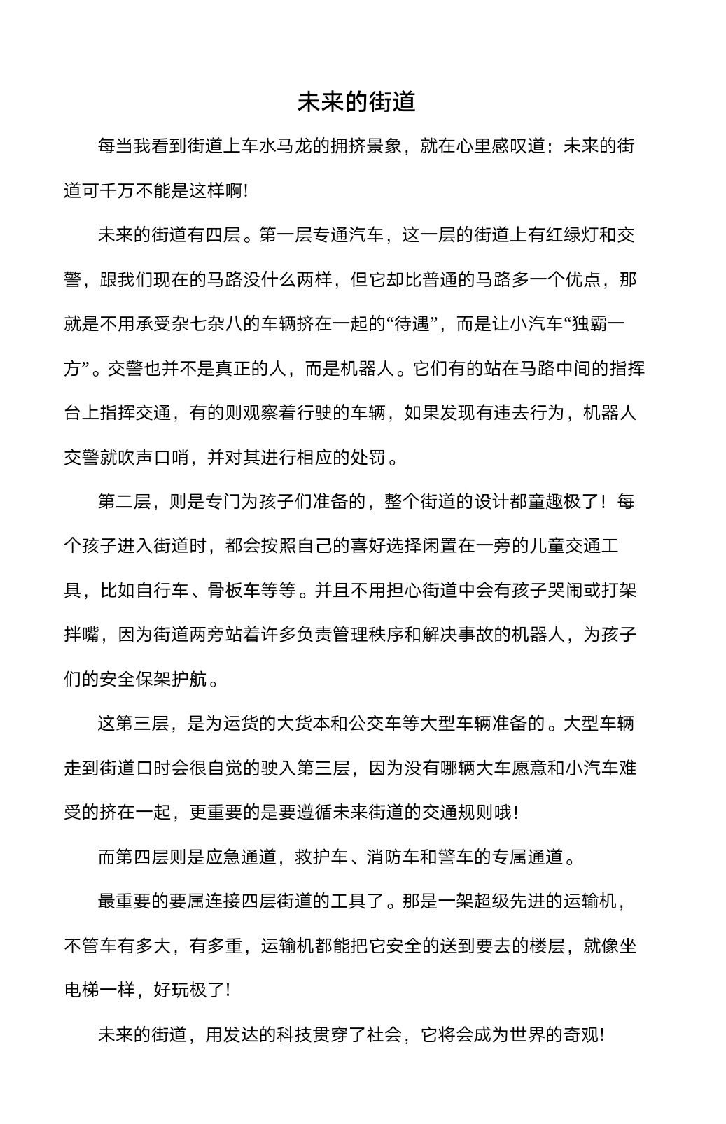 发挥想象的翅膀,有条不紊的写出来了未来街道的样子!