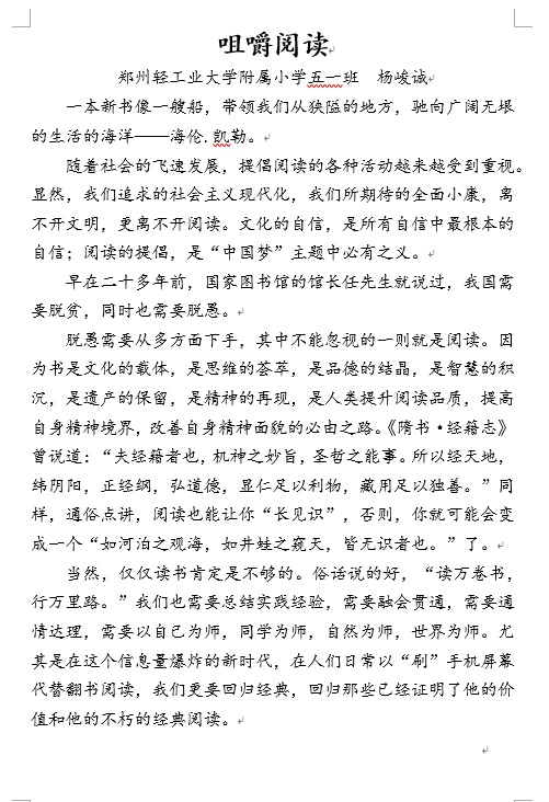 指导老师:安静婧 所属学校:郑州轻工业大学附属小学