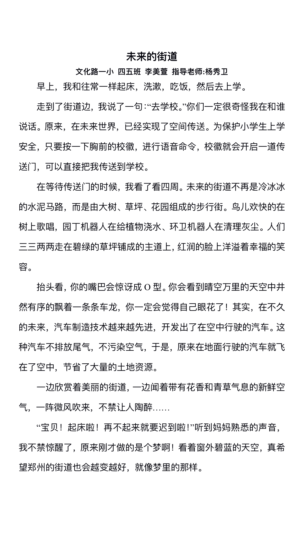 指导老师:杨秀卫 所属学校:金水区文化路第一小学