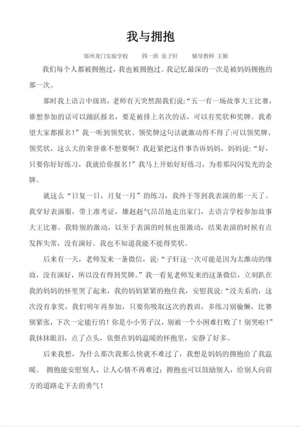 指导老师:王嫄 所属学校:郑州金水区龙门实验学校