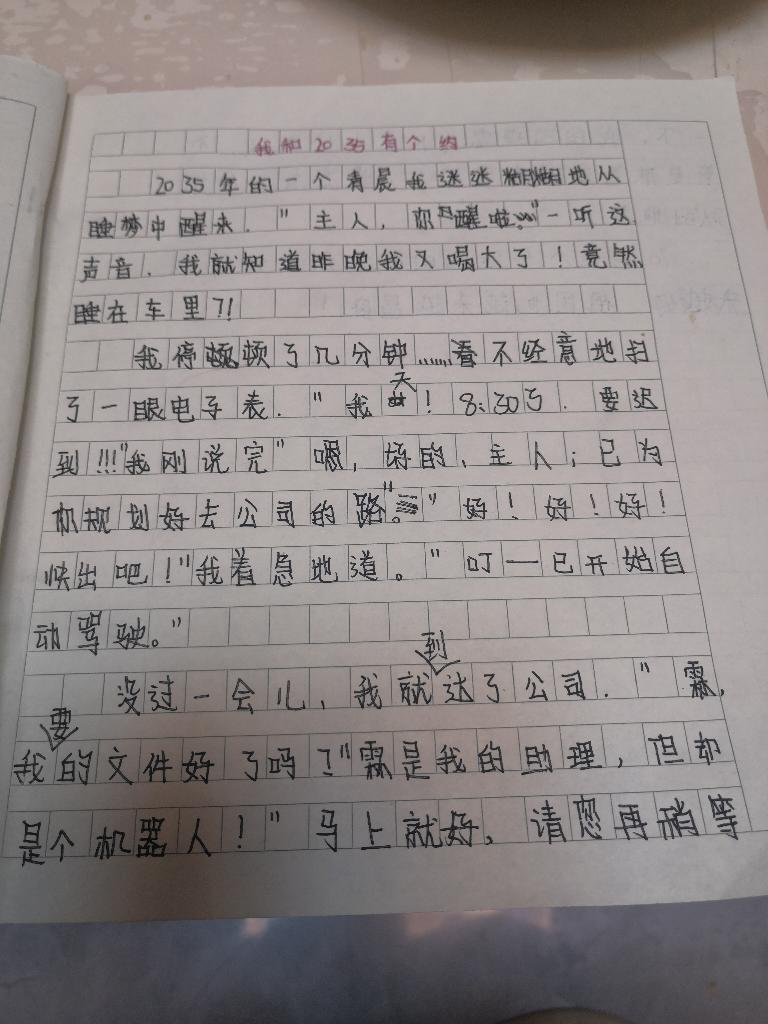 | 这篇想象作文,开篇直接点题,进入正文。你的想象力比较丰富,从未来社会的人工智能入手,带领读者感受下未来的智能社会。从你的作文可以看出,你平时阅读类似的文章比较多,喜欢使用语言描写,期待你能够更加详细具体地把你的想法分享给我们。 |