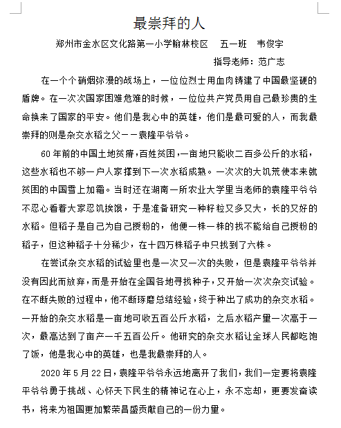指导老师:范广志 所属学校:金水区文化路一小翰林校区