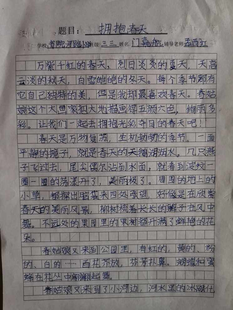 指导老师:孟西红 所属学校:登封市书院河路小学