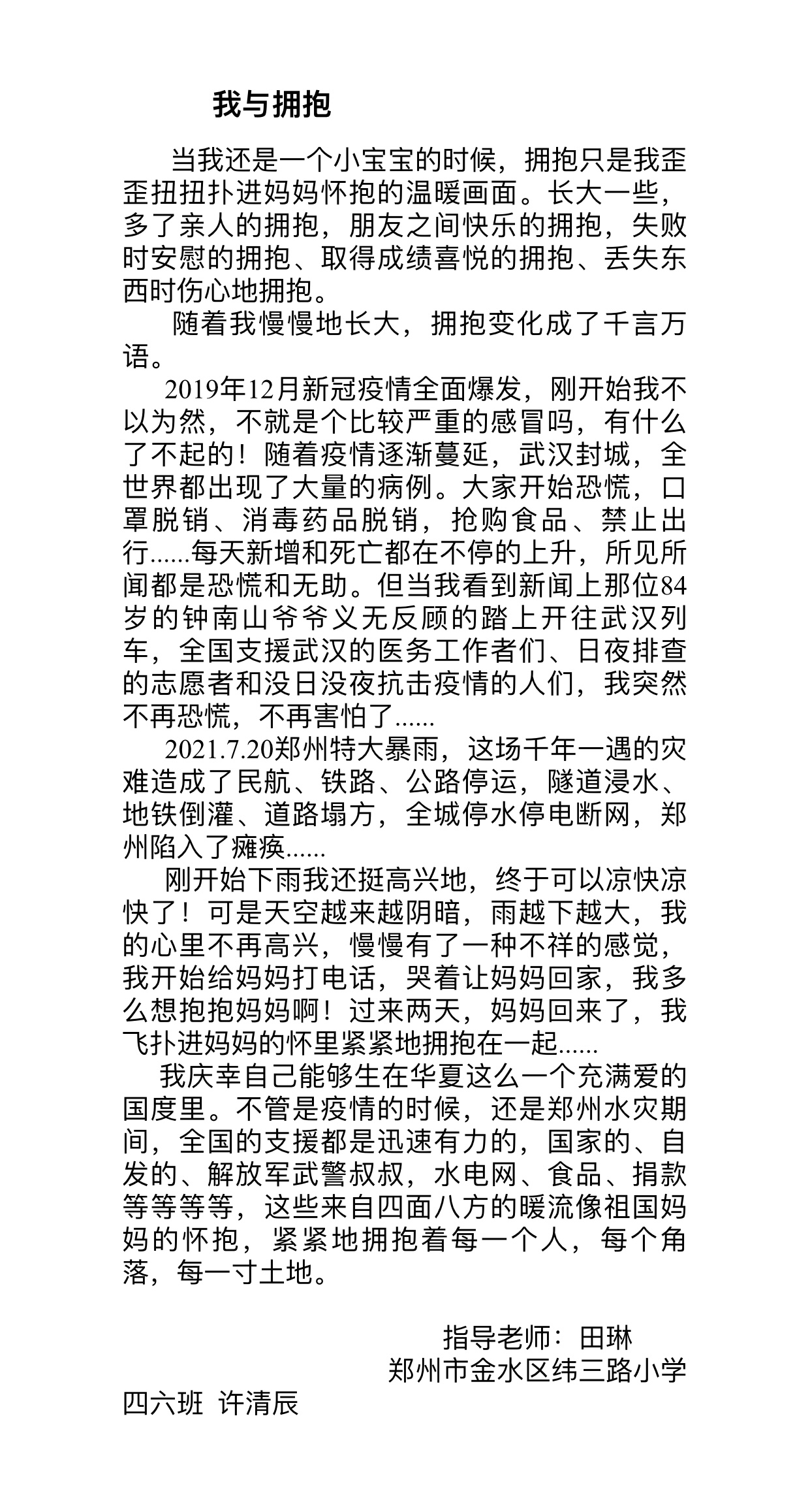 文能言声,文章正是你心灵的反应,关心生活关注社会看来并不只是成年人的特权,小小年纪的你也能从真实生活中汲取、诠释生命的真谛,字里行间透露出对生活的热爱!