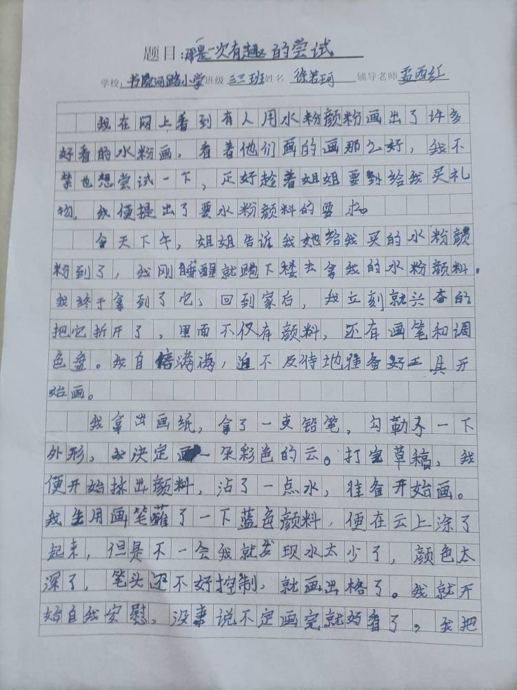指导老师:贾西红 所属学校:登封市书院河路小学