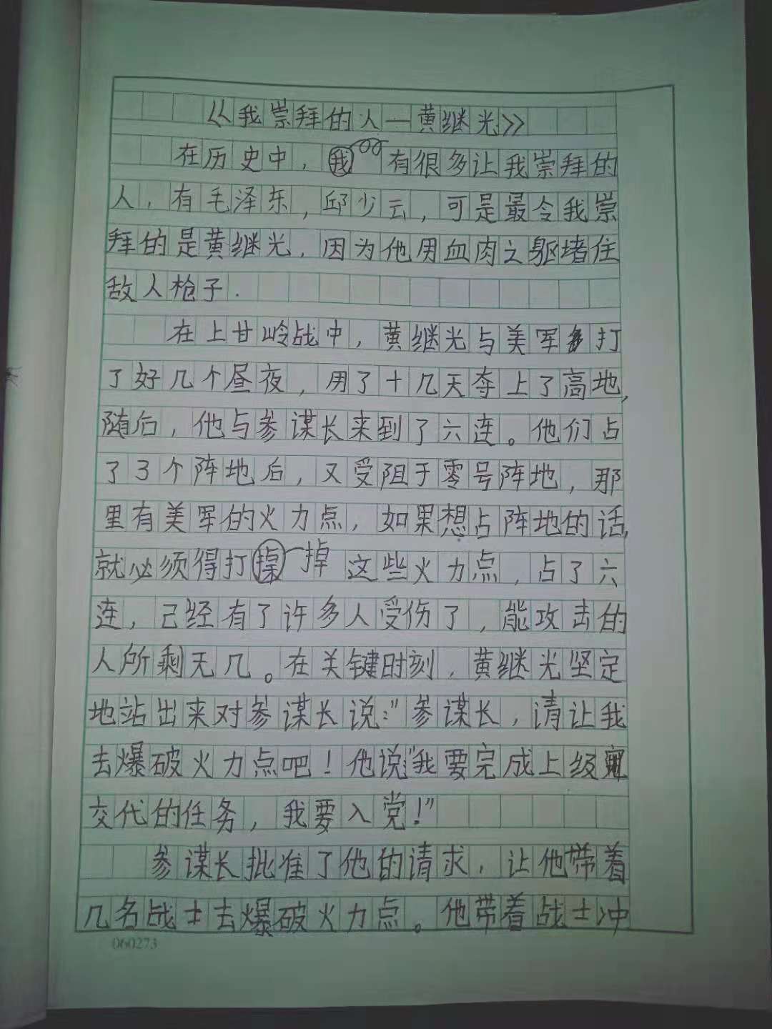 我崇拜的人—黄继光