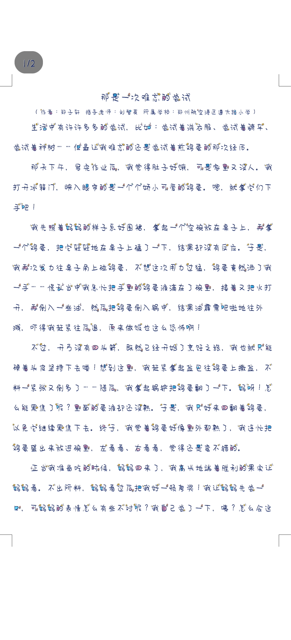 指导老师:刘智英 所属学校:郑州航空港区遵大路小学