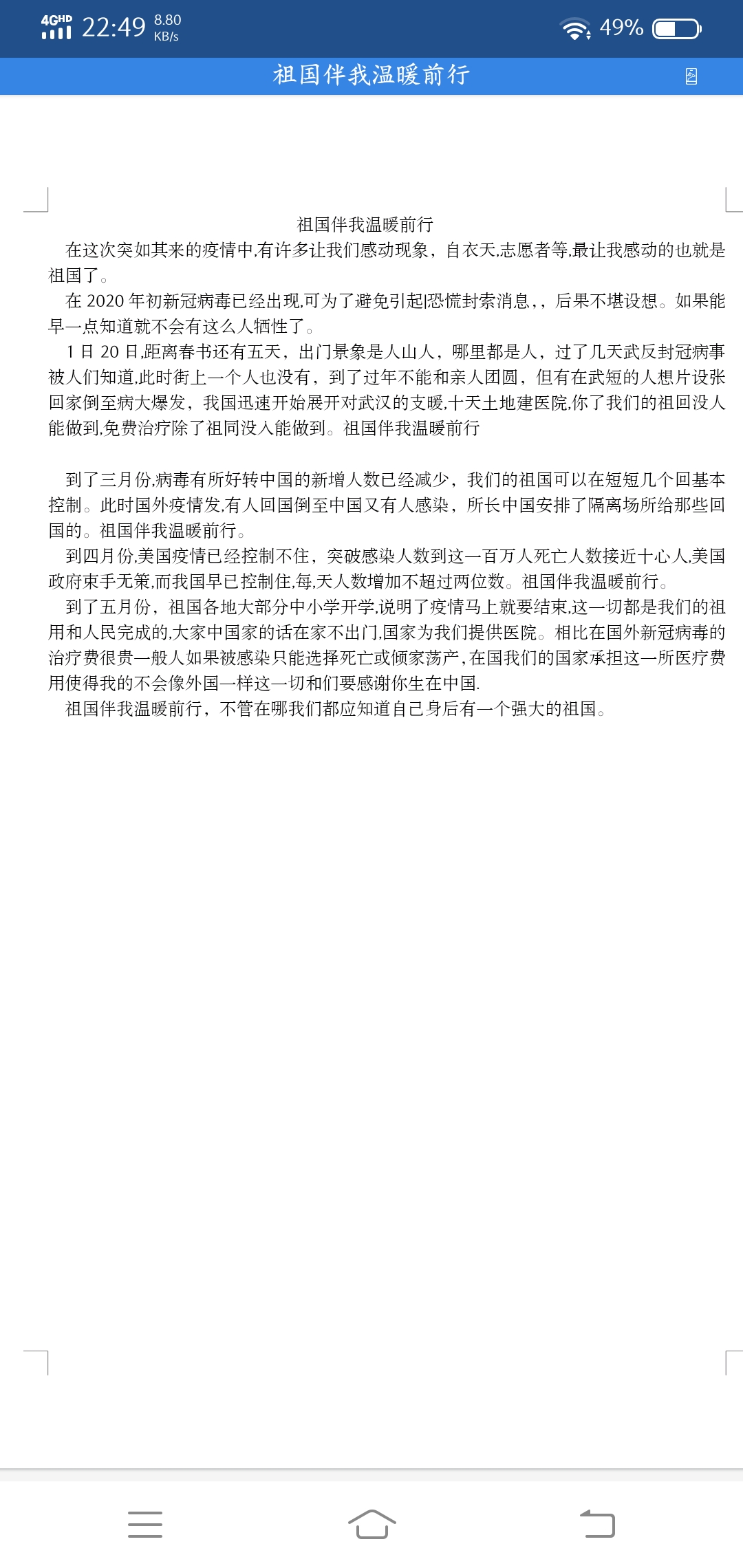 祖国伴我温暖前行