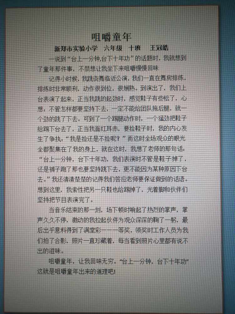 指导老师:石红婷 所属学校:新郑市实验小学