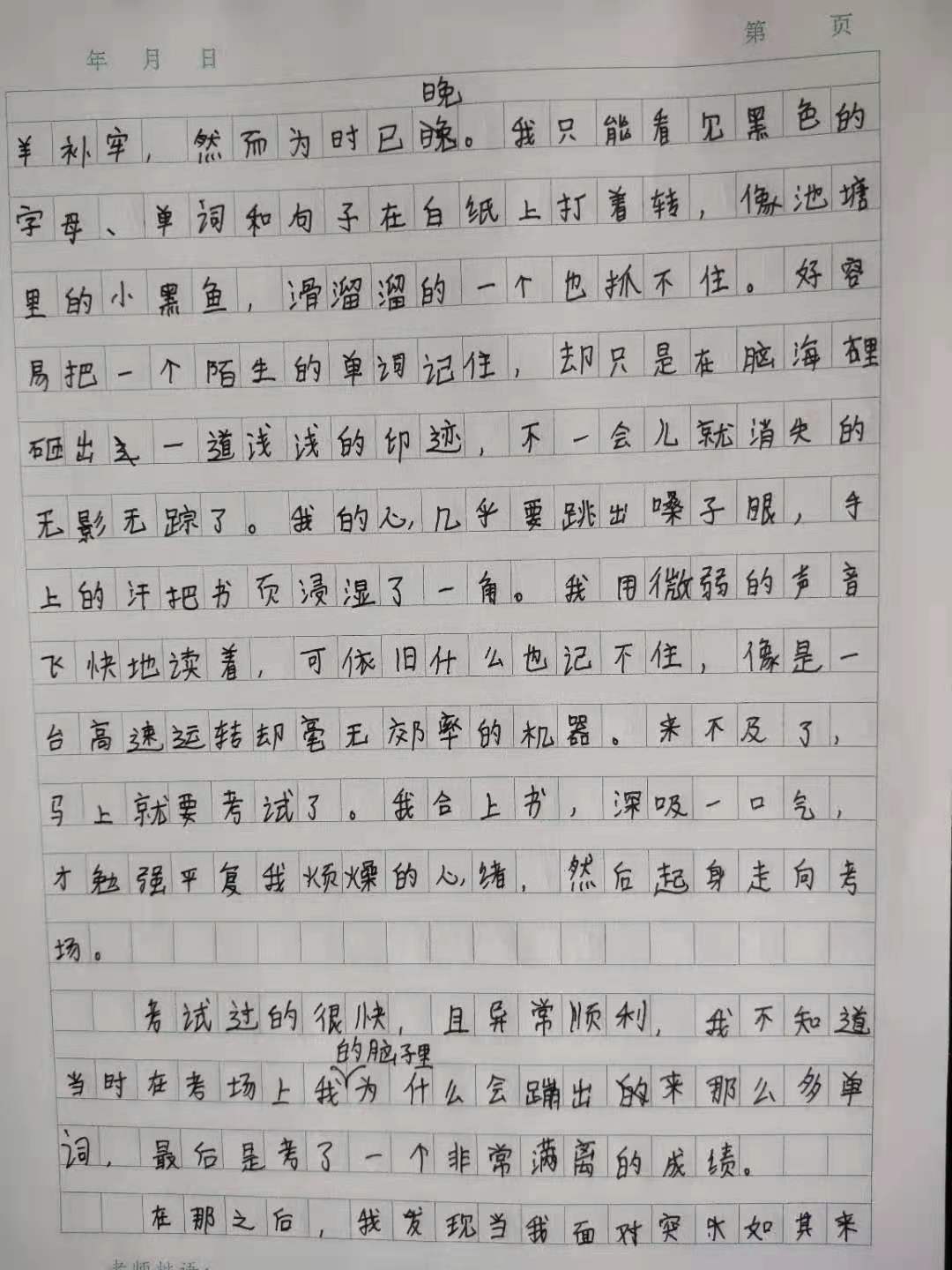 以下区域为指导老师点评区域,若您无法点评,请先核对此作文的指导老师名称与您的账户真实名称是否相同。